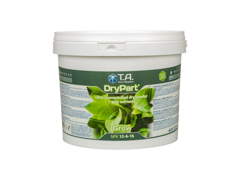 DryPart® Grow a DryPart® Bloom jsou samostatně využitelná, ve vodě rozpustná hnojiva vyrobená za použití vysoce kvalitních primárních a sekundárních živin a mikroživin ve vhodných koncentracích. To pomáhá dosáhnout nejintenzivnějšího aroma a nejvyšší produkce i v té nejměkčí vodě. Oba produkty mají stabilizované pH.