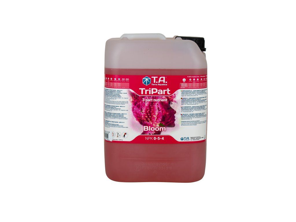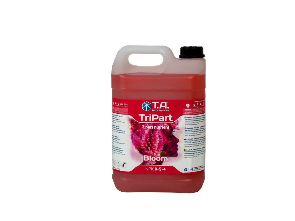 TriPart Bloom je hnojivo pro hydroponické systémy, ale i pro půdní substráty a další pěstební média. TriPart Bloom je určen ke hnojení rostlin v květové fázi a dodává jim potřebné živiny a důležité prvky, pro perfektní stavbu květů, jejich mohutnost a sílu. TriPart Bloom během růstu podporuje vývoj kořenového systému a zlepšuje zdravotní stav pěstovaných rostlin. Ve fázi květu tvorby plodu umožňuje plné využití genetického potenciálu rostlin, což se projeví nečekaným zvýšením výnosu. Vyvážený poměr NPK zajišťuje dostatečný přísun všech důležitých stavebních prvků květů.