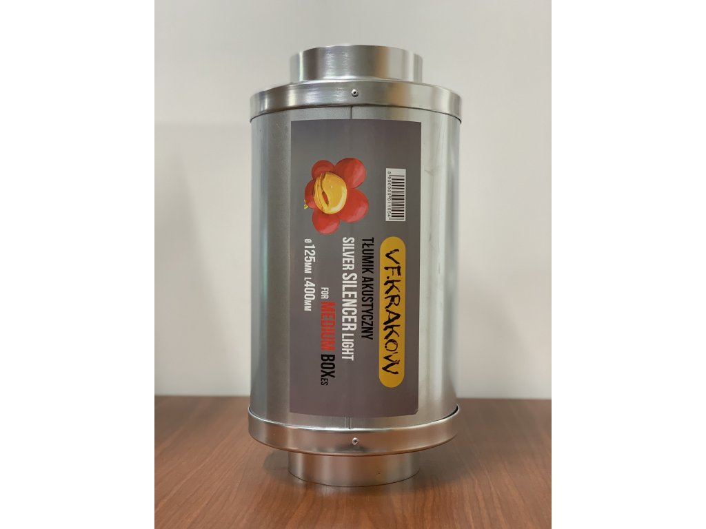 Ultralehký akustický tlumič hluku VF kruhový kovový s přírubou o průměru 125 mm a celkovou délkou 400 mm minimalizuje nepříjemný hluk výfukového ventilátoru, absorbuje a rozptyluje zvukové vlny díky speciální akustické pěně a je odolný díky pouzdru z hliníku a pozinkované oceli.