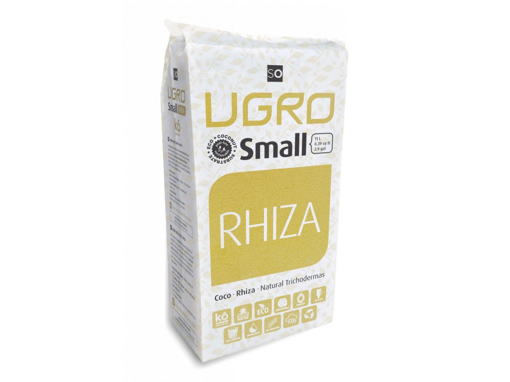 U Gro RHIZA small je 0,75kg vážící kostka z lisovaného a dehydratovaného kokosu z malých částic s nízkým procentem vláken, smíšené s endomycorrhizae (5%). Toto je speciální ektomykorhizní houba, která vytváří kolem kořene tzv. hyfový plášť, díky němuž se zvyšuje savá plocha soustavy kořenového systému.