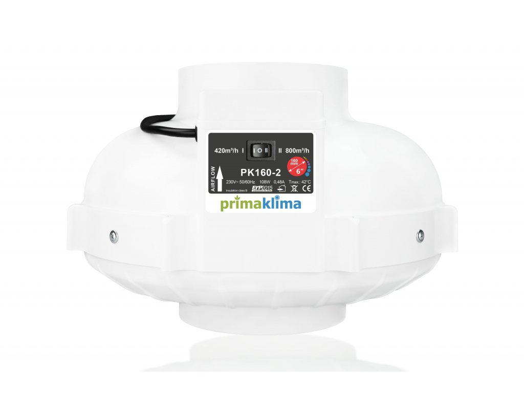 - Prima Klima pk150-2 ventilátor s maximálním průtokem vzduchu 760 m3/h
