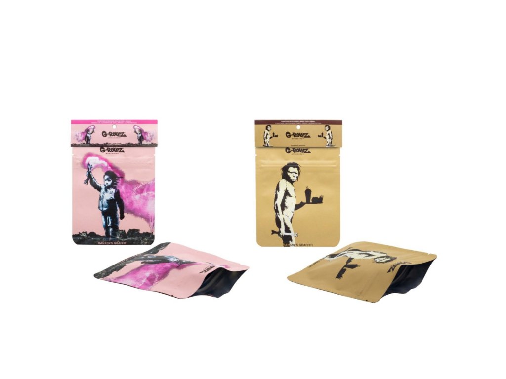 Sáček G-Rollz s pevným zipem je odolný proti úniku zápachu a nepropouští světlo, k dispozici jsou dva grafické designy.