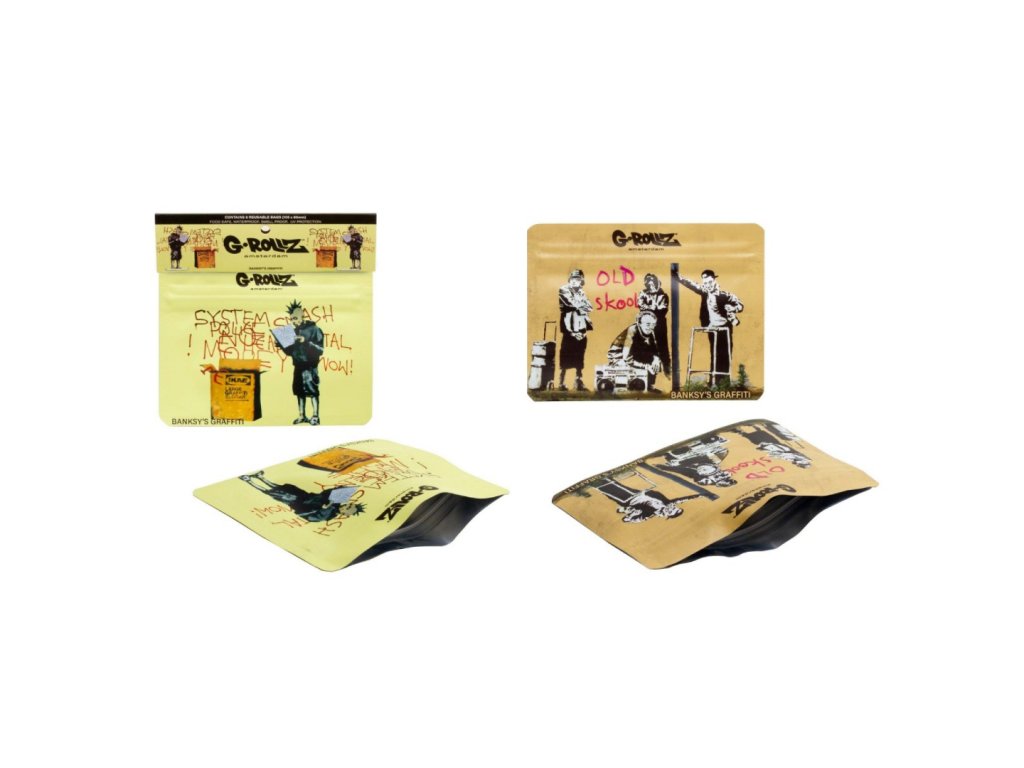Sáček G-Rollz s pevným zipem je odolný proti úniku zápachu a nepropouští světlo, k dispozici jsou dva grafické designy.